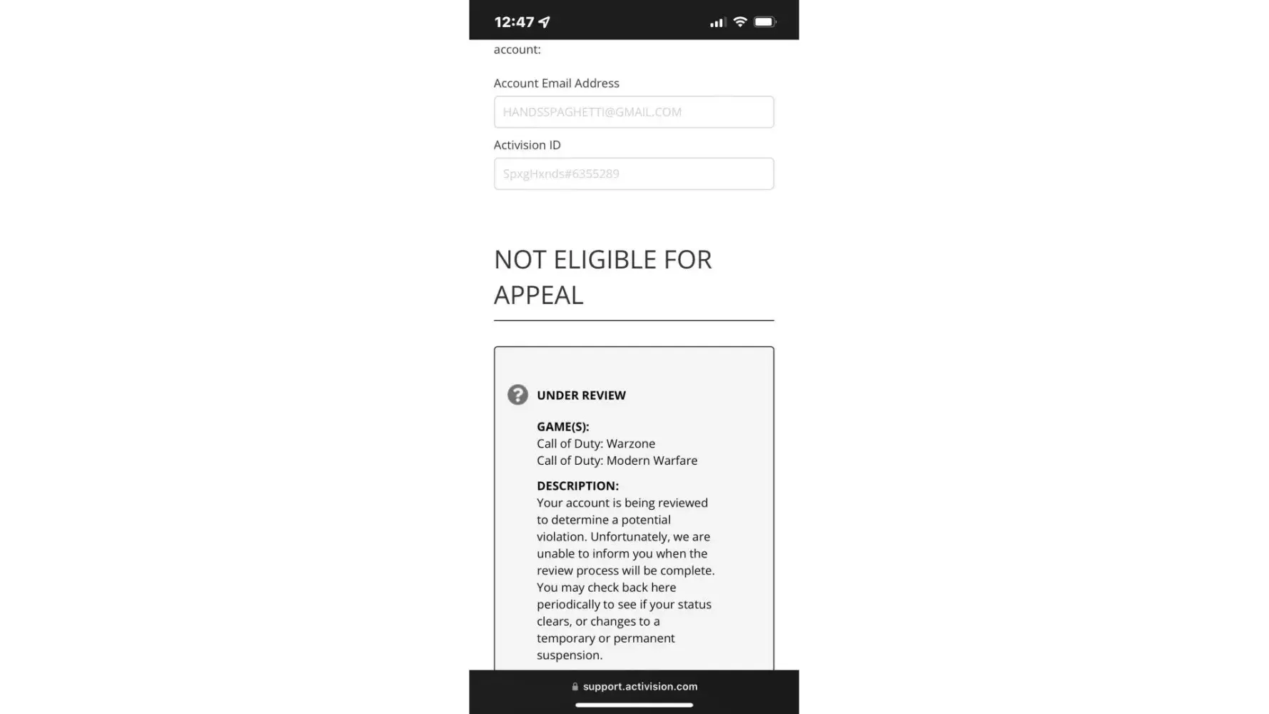 My Account got Banned in Call Of Duty Warzone.
