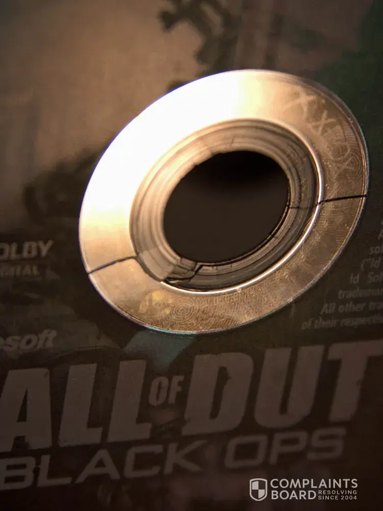 Last week, I noticed small cracks radiating from the center of the disks, making them unusable (see links below). As background, our sons have always taken care with their games, putting them back in the cases when finished and taking them out of the cases correctly. Since our first game system in 2004, a Sega Dreamcast, through a Nintendo Gamecube, a Wii, and now the X-Box 360, we had never experienced a disc with cracks like these. Now, four months after buying these games, and paying a premium for them, they can't be used. A number of other X-Box 360 games, made by other manufacturers and purchased at the same time as the cracked discs, are fine.