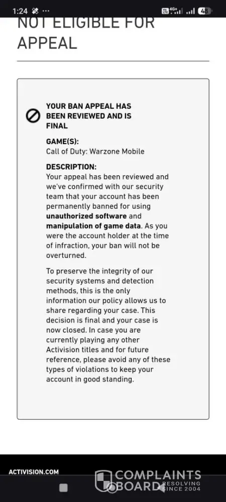 Hello. I would like to know why i got banned for 10 years in Call of duty mobile
