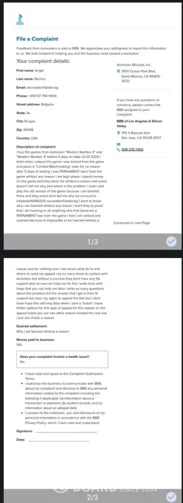 Desired outcome: To fix the ban my account and allow me to sign into Activision.