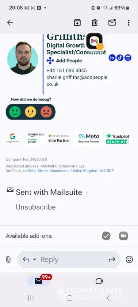 When after many months, thousands in lost revenue, marketing spend and AddPeople fees, you decide that you’ve had enough, and need to take think of your business and take back control of your marketing. AddPeople will harass and threaten with legal action because all they truly care about is their UPFRONT monthly fee which is without any commitment of targets / risk free to them. They DO NOT care about your hard earned money which they are wasting on you behalf with their ineffective, expensive marketing campaigns which generate almost no sales.