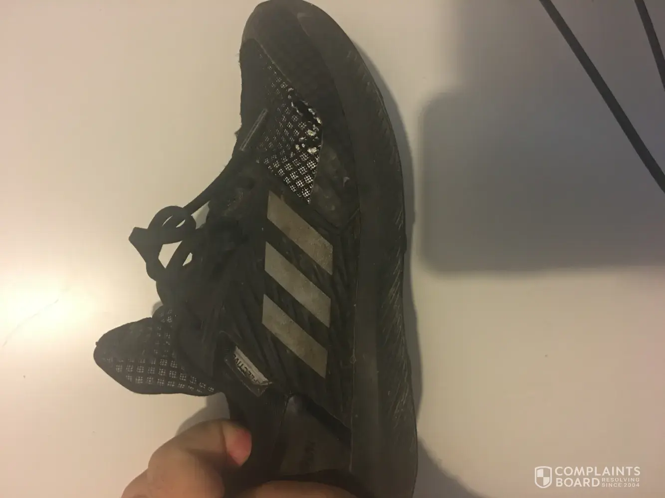 I actually agree with the complaint, I have a similar pair of Adidas Spring Blades and the same thing has transpired. Really not impressed with Adidas after paying R 2 200.00 for a pair of shoes that may be FUBAR? Would you care to comment Adidas?