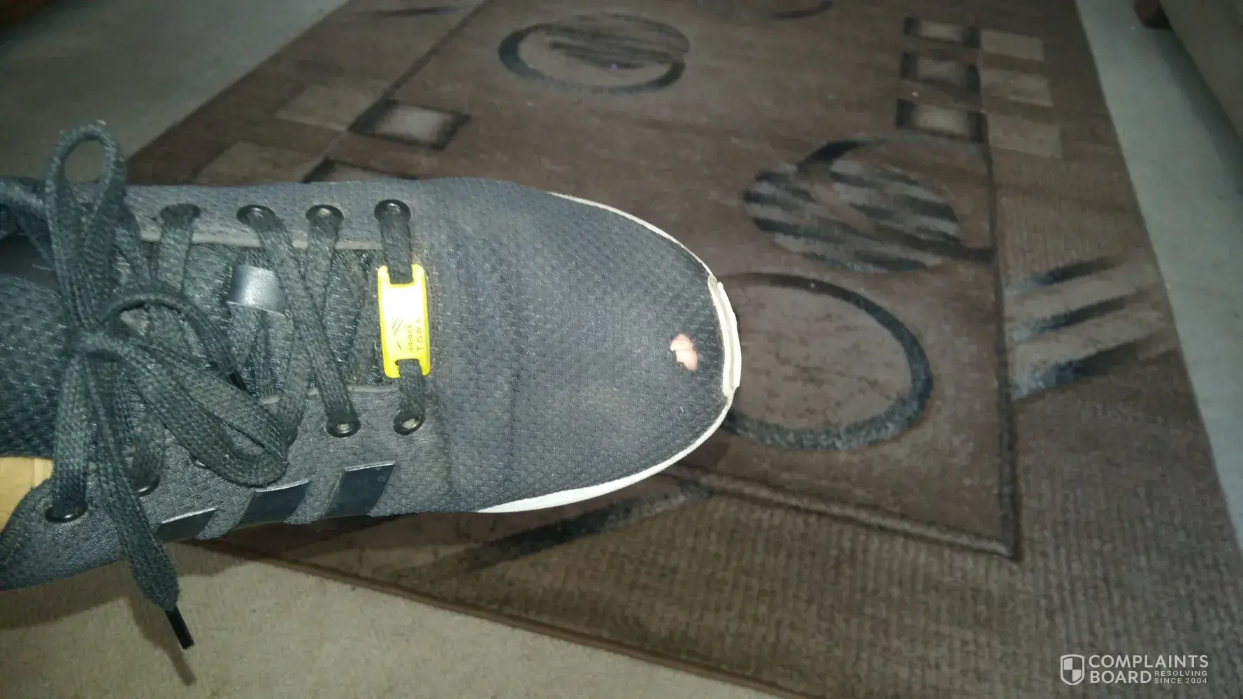 I am highly disappointed in the poor quality of this product which has been used soley for it's stipulated use. My sneakers are only 7 months old and already one of the shoes has torn completely on one side and the other has an emerging hole-please see photo attached.