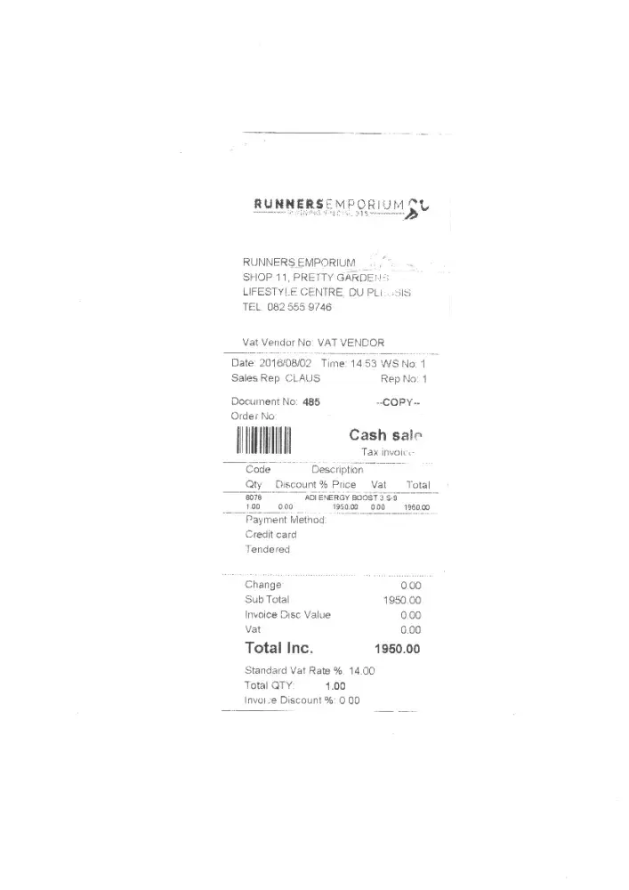I bought a pair of Adidas Energy Boost 3 on 02/08/2016 @ Runners Emporium in Bloemfontein. I bought this only for races and not for normal training. after i put only 28km's on the shoe, i realized that it has almost run through the sole on the left side and almost the same on the right. i took at back to the store i bought it at and they advised that they will have an Adidas rep look at it. after about two weeks they got back to me saying that it is part of the run in and that i should just keep an eye on it. It's just getting worst and i spent R1950 on this shoe and it hurts me paying so much for something but not getting value out of it. i would really appreciate it if could get some kind of refund to buy another shoe. I really like my Adidas running shoes.