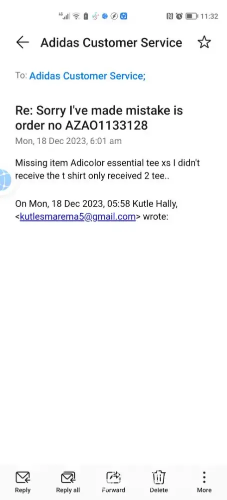 I've experienced poor service from adidas since I've been waiting for my refund since last year December.. I've complained send them an email several times but evn now is not resolved am still waiting