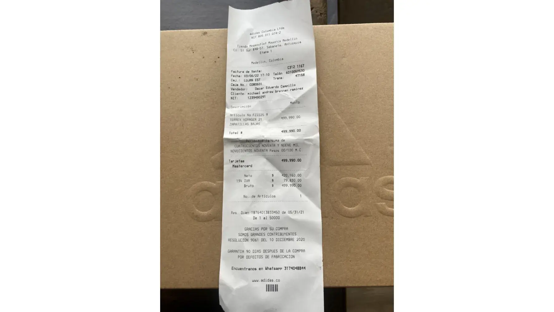 I purchased sneakers at Adidas store at Mayorca Mall in Sabaneta, Antioquia, Colombia, where I live.