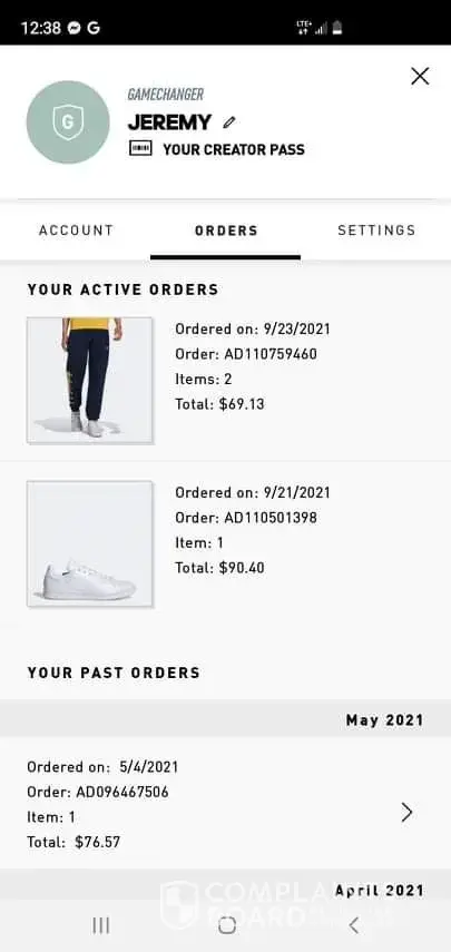Recently placed two orders a day or so apart. (have order several times prior form adidas with no problems).