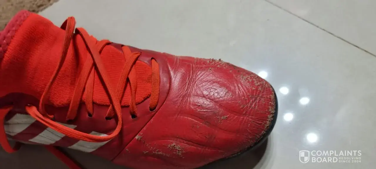 It was peeled for no reason as he wear it only in football training, we bought it 3 months ago, hoping to have a solution soon, because we went to the store for complaining and we didn't get any persuaded answer, we are in shock as we used to wear adidas in all our life style, since we sent it to the store my son didn't trained and in abad mood too and still waiting for your support;