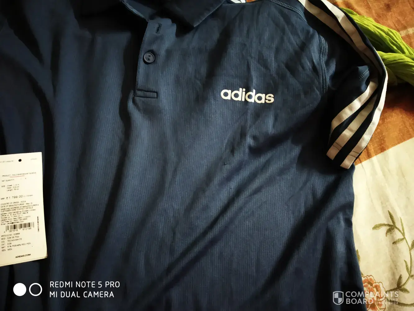 I bought a sports t-shirt from adidas store located on pathankot novelty mall punjab 145001 india. The products code is. Article no ei5556 mod: d2m 3s polo col: tecink/white cat: d2m. Bought in the last week of august phone no:[protected].