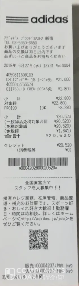Purchase store name: Shinjuku Adidas, Tel:[protected]