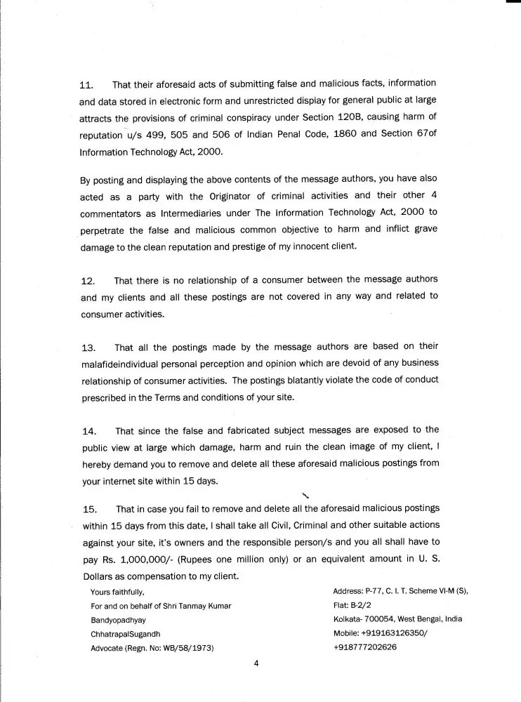 4) If anyone has got any claim then, they can always approach the organization and establish their claim and resolve the issue. However, instead of coming to us, why have they resorted to such an act which cannot give any kind of comfort to them even in the case of someone having some views.