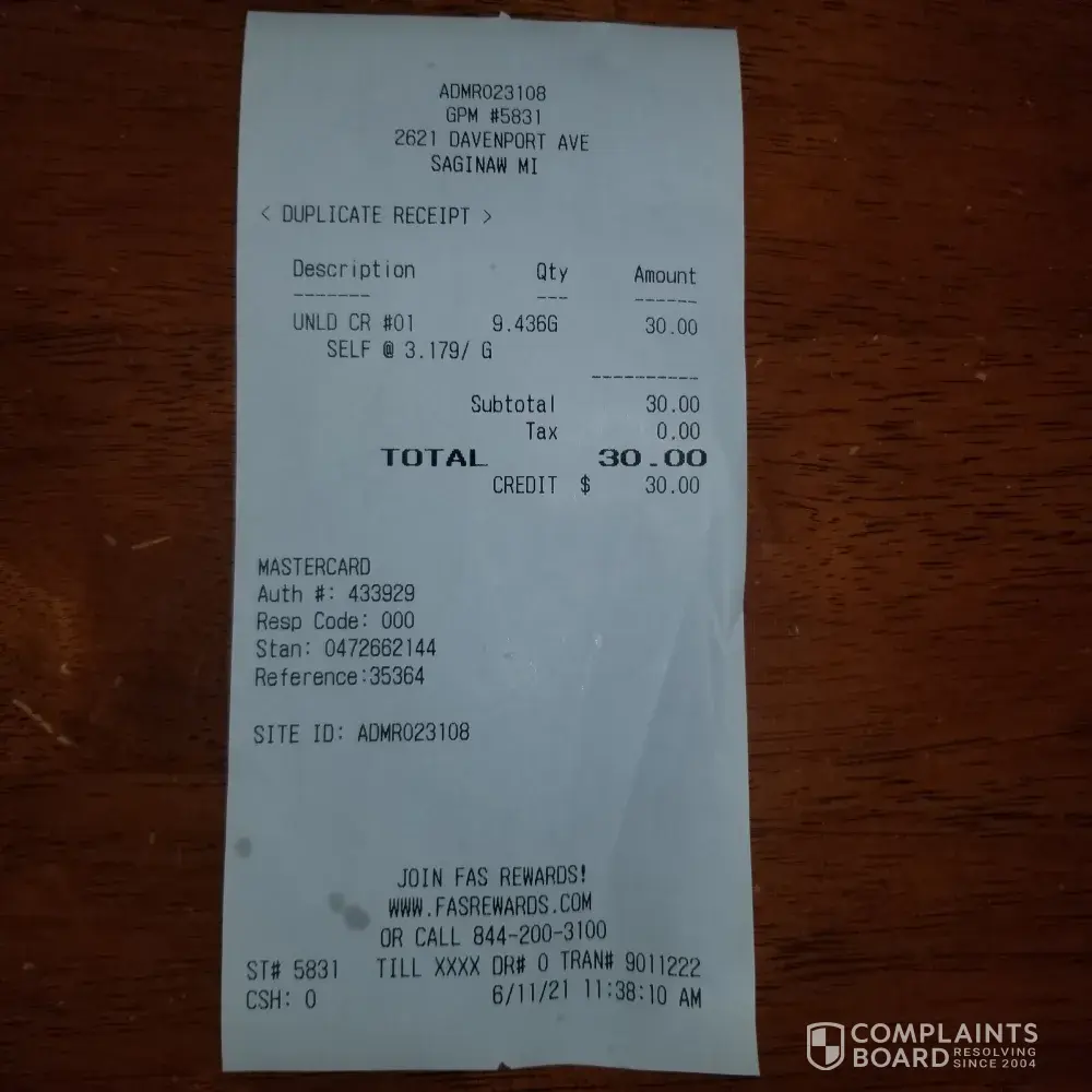 Hi Admiral, your gas station located at 2621 Davenport Ave. in Saginaw, Mi 48602 has false advertising. I purchased fuel on 6/11/21 @ 11:38 AM. While fueling I noticed the pump read $3.17, thought that was high, so I glanced over to your sign, and it read $3.08 for unleaded. I asked the clerk and she told me go off the pump. I told her that's false advertising, she said go off the pump not the sign. I'd like something done about this misinformation, or I"ll take my business elsewhere and leave an unfavorable Google review. Thank you