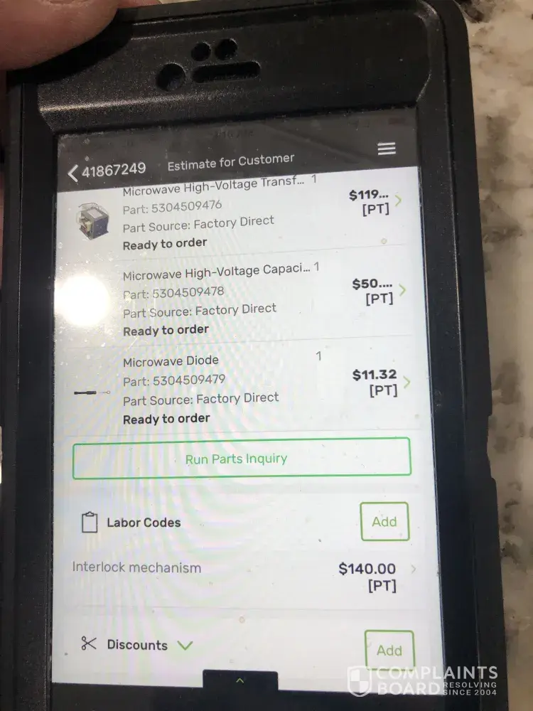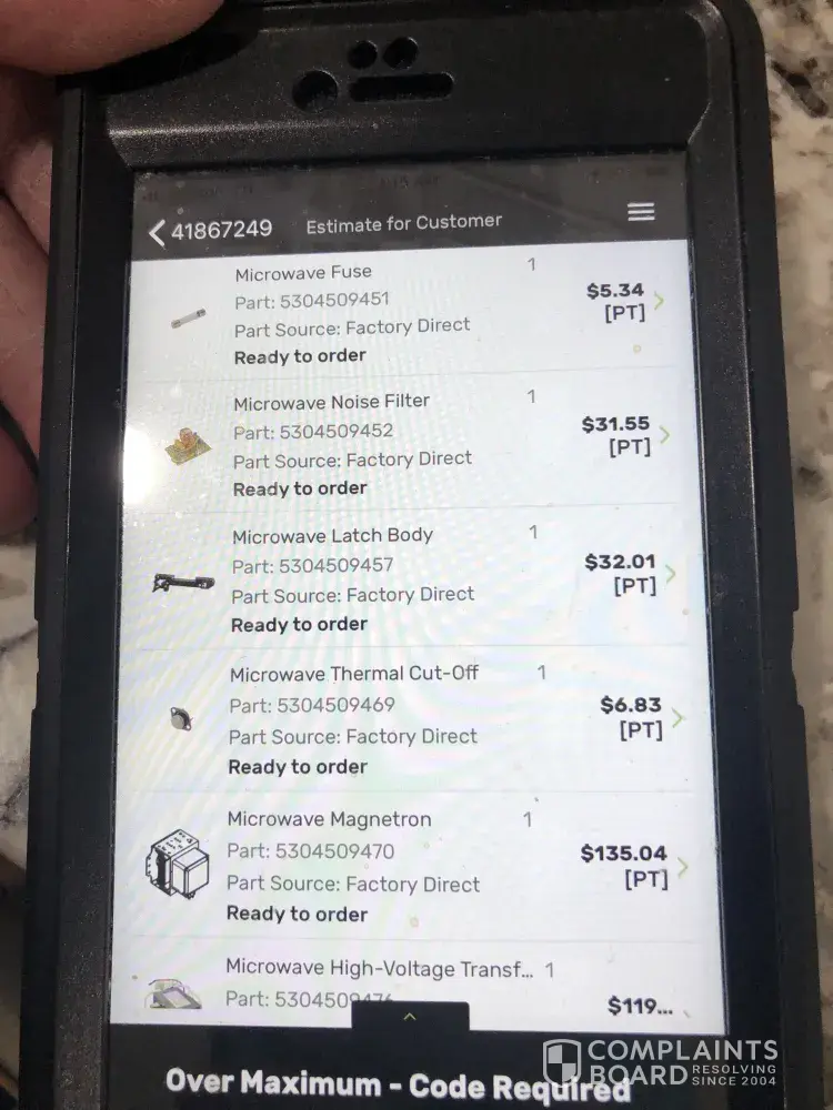A&E Factory Service Microwave - overcharging for repair