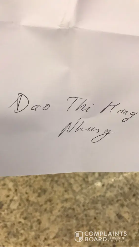 I required the name of the worker who has refused to help my parents. Her name is Dao Thi Hong Nhung( see attached picture).