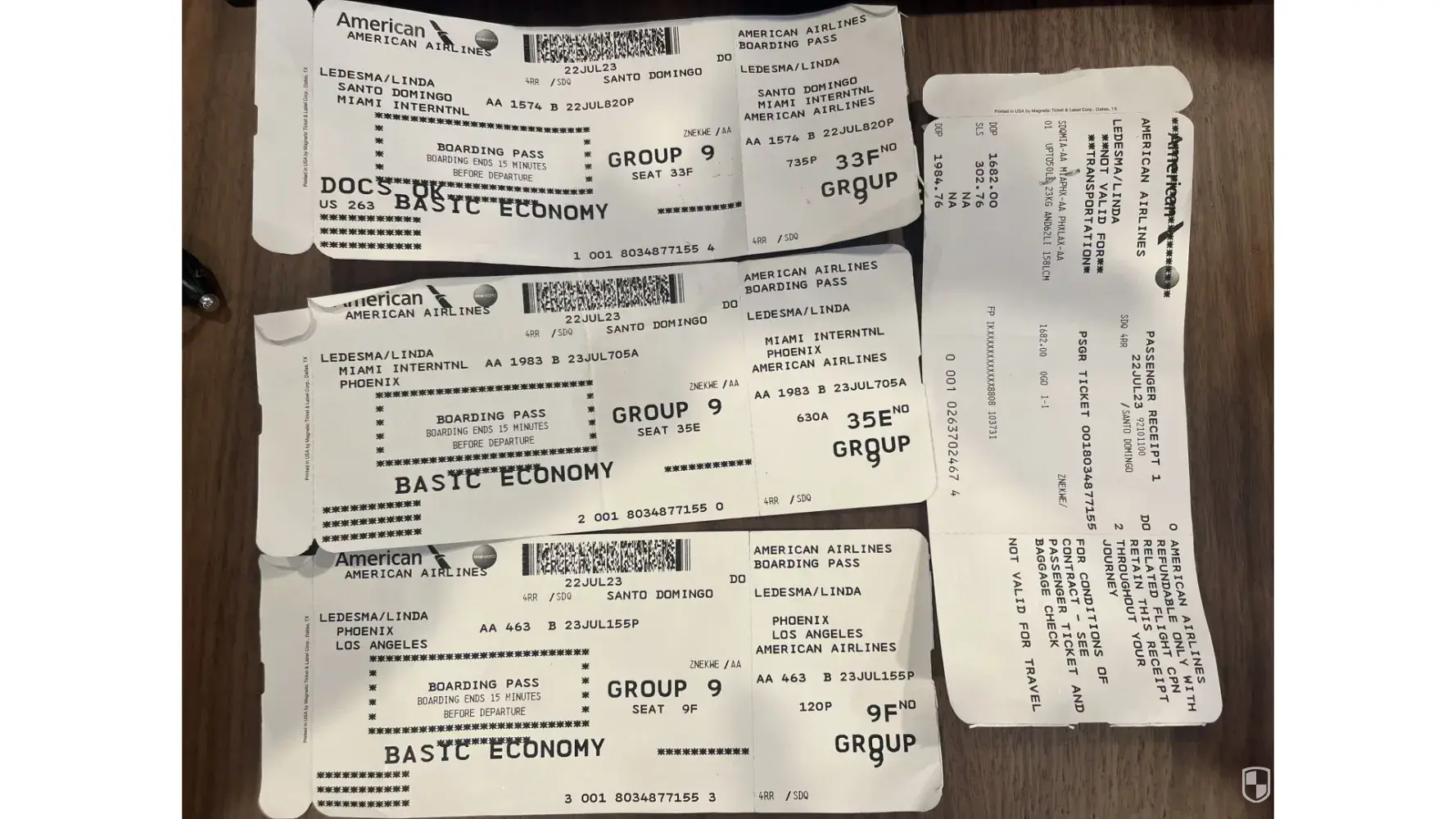 Attached, you will find the tickets purchased for American Airlines, which does not include the $35 luggage fee. Below you will find the info on the person who purchased the tickets and her info:
