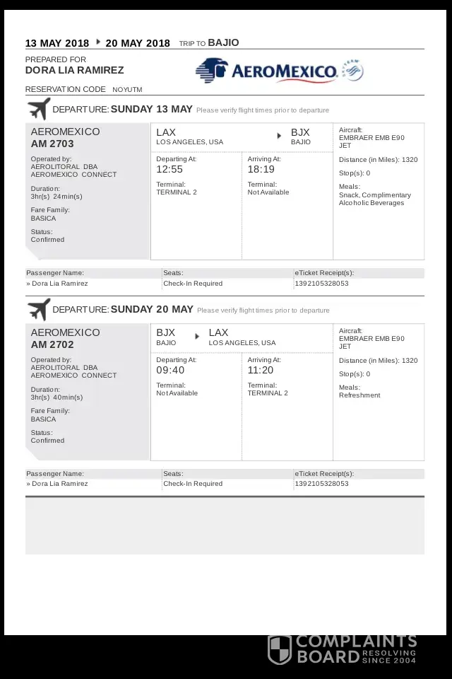This complain was done on April 23, 2018 I haven’t heard anything from Aeromexico. It’s May 29 2018 I just wish that they would give me a refund.
