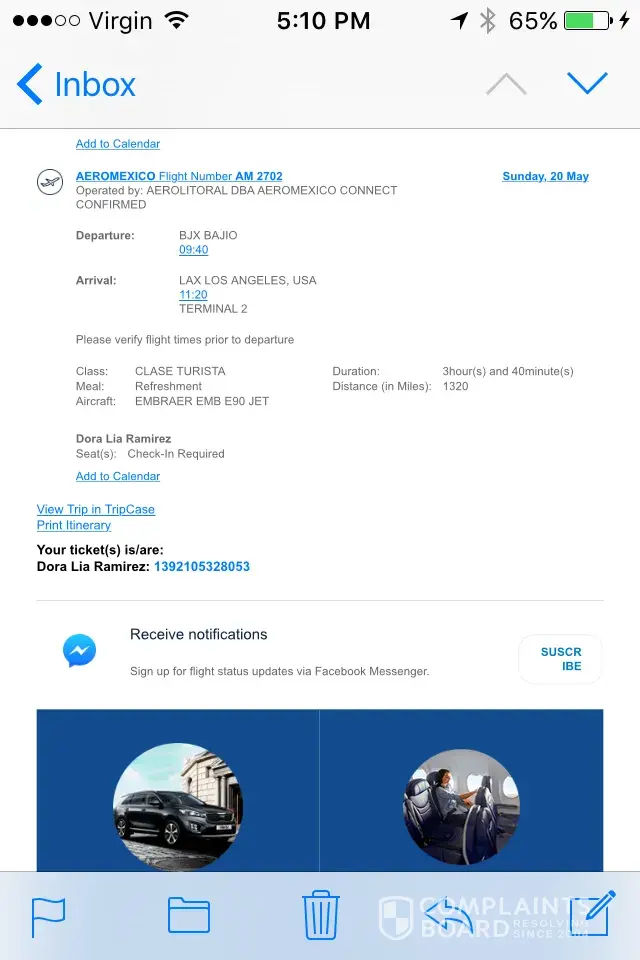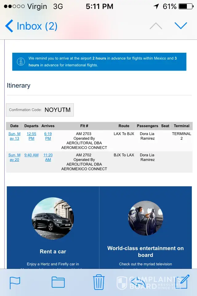 I called Justfly.com and made a complaint with them too and they called Aeromexico but they said i have to make a complanit on line which i did again for the 3rd time! Mia was her name