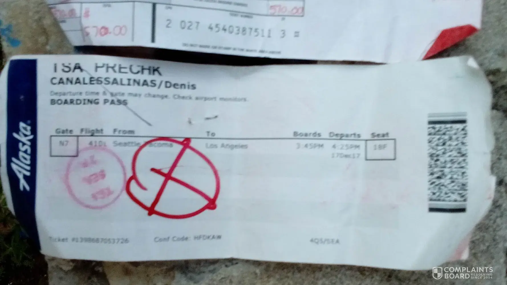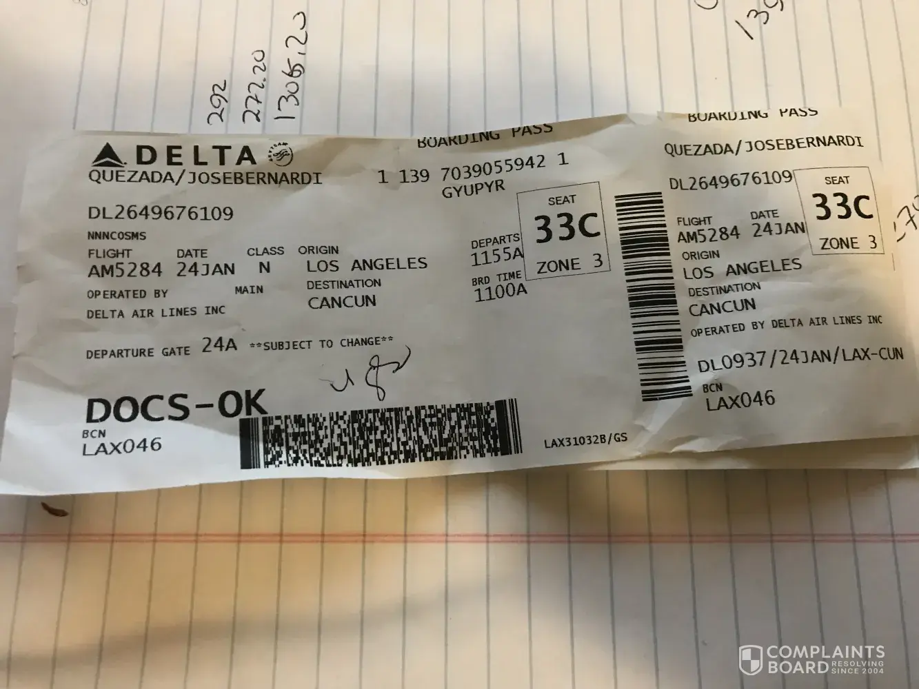 And finally, days before we left for our trip, I booked one more seat for my daughter, Kassidy Taylor Batchelor – Reservation #LDJZEB.
