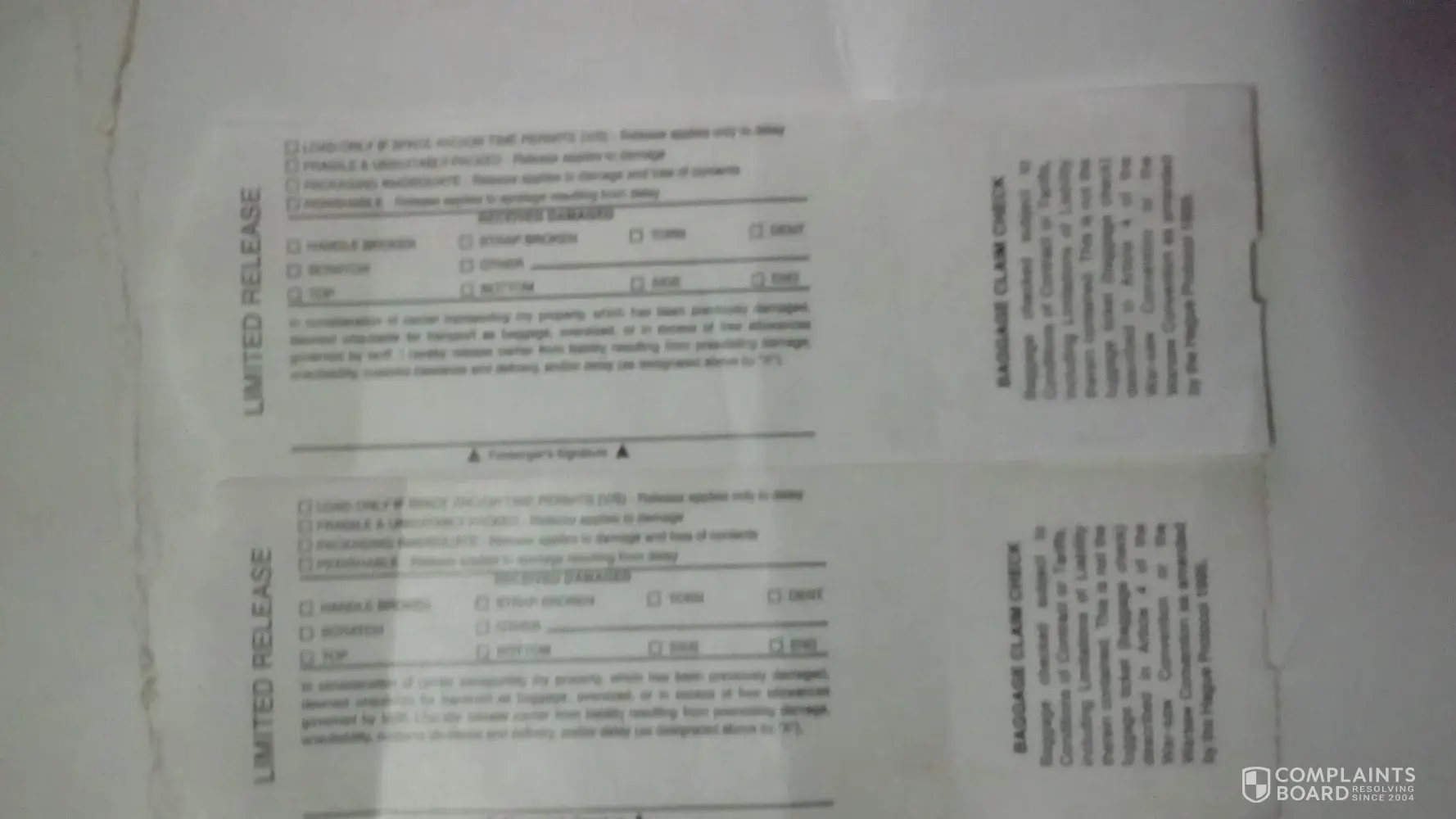 And my husbands luggage was given to us broken not damaged it's was broken u could see his clothing threw the damage part
