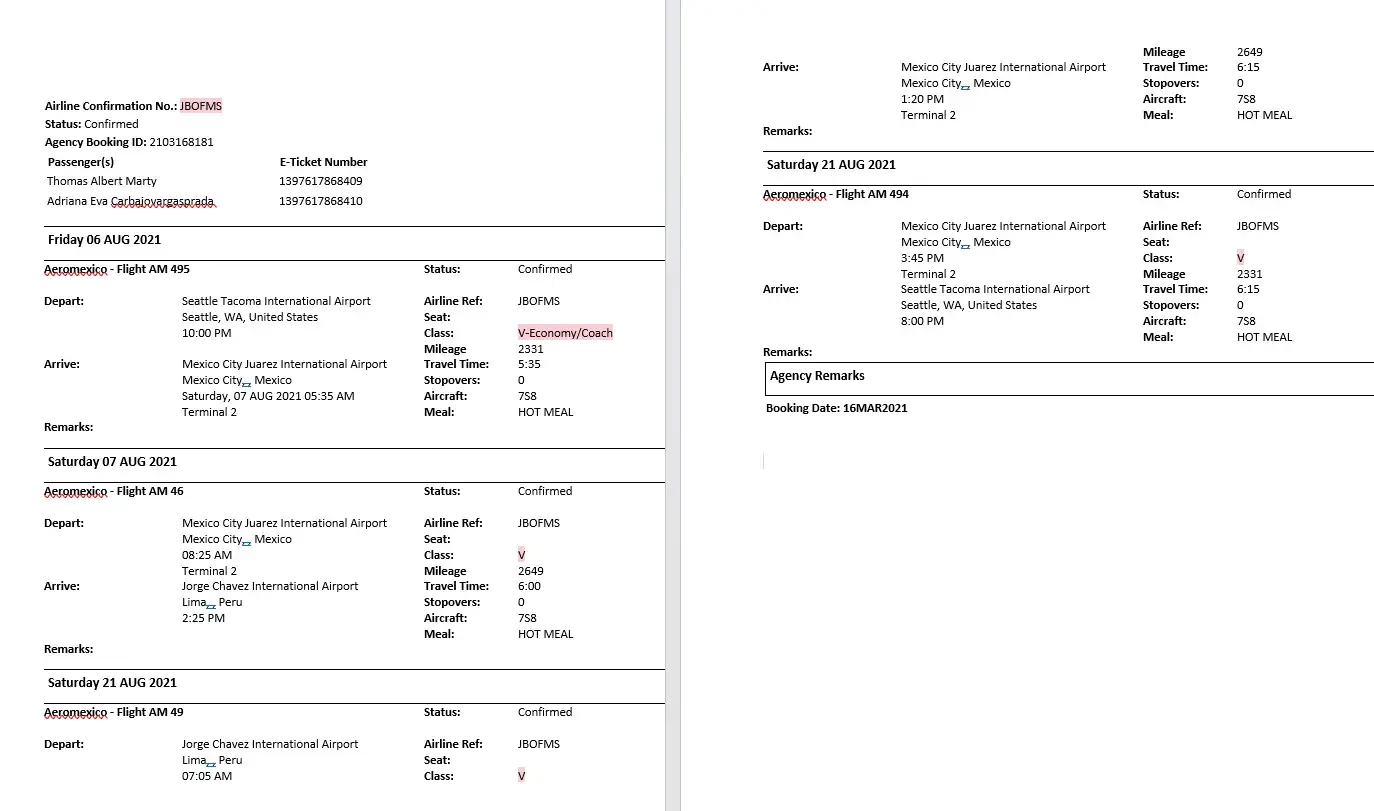 Aeromexico One person in our travel party's flight is "no longer available". He now has to return home separate from us.