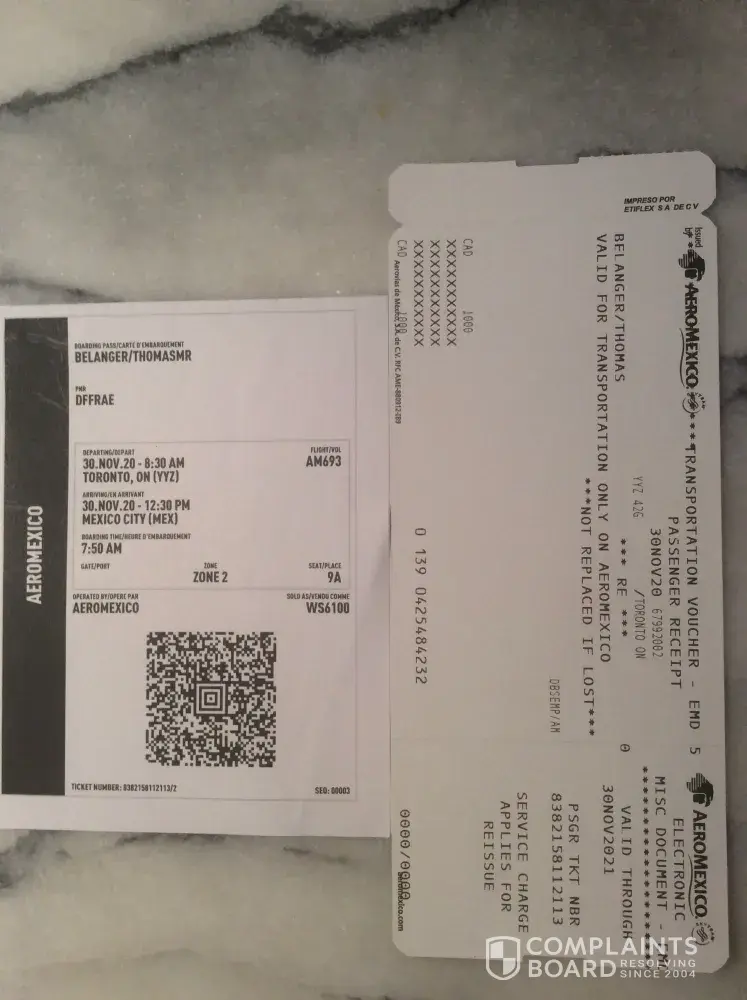 Aeromexico foraflight onNovember 21, 2020. Upon lockdown Iasked forarefund and was told that only vouchers