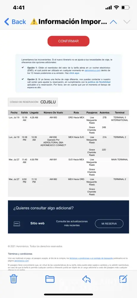 We tried to call Aeromexico's customer service but we were outside of their hours of 7am to 6pm. We did email in the letters from Avianca and received an automated response and a claim number stating someone would be in contact shortly.