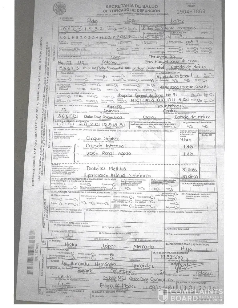 Dicho vuelo no fue abordado al recibir información de que el Sr. padre de Olga habÃa fallecido el 01/17/20 y mi familia reclamaba su presencia.