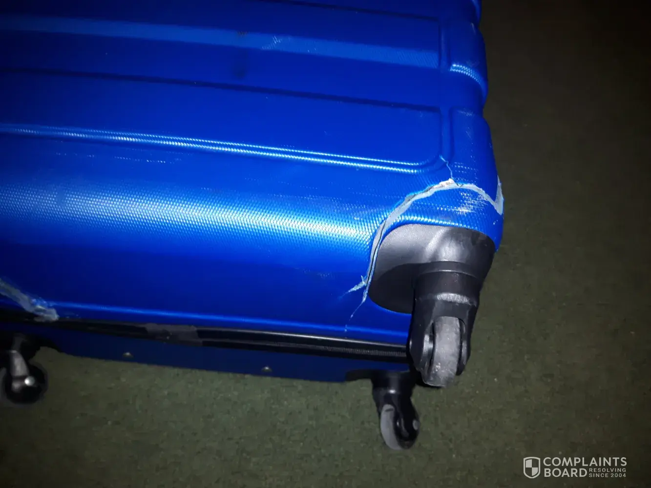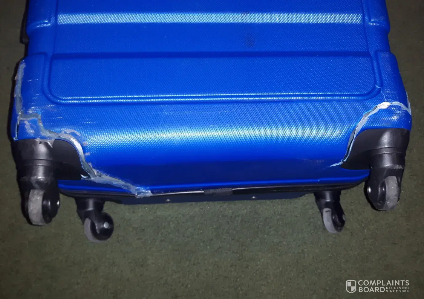 I am attaching photos of the damage and respectfully request to be reimbursed for the cost to replace our luggage at an approximate cost of $250.00 or a credit towards future travel.