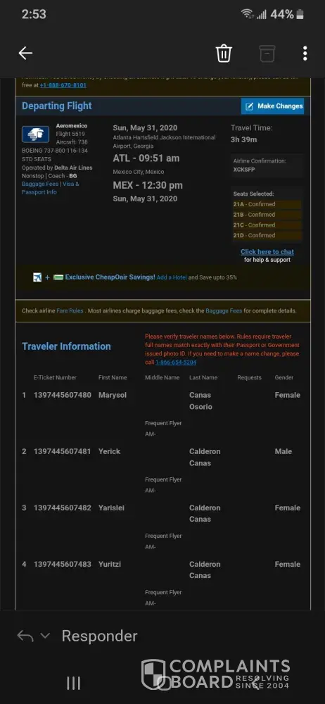 Is that all, to be ignored, I have still not had any reimbursement, this experience with Aero Mexico was a costly lesson