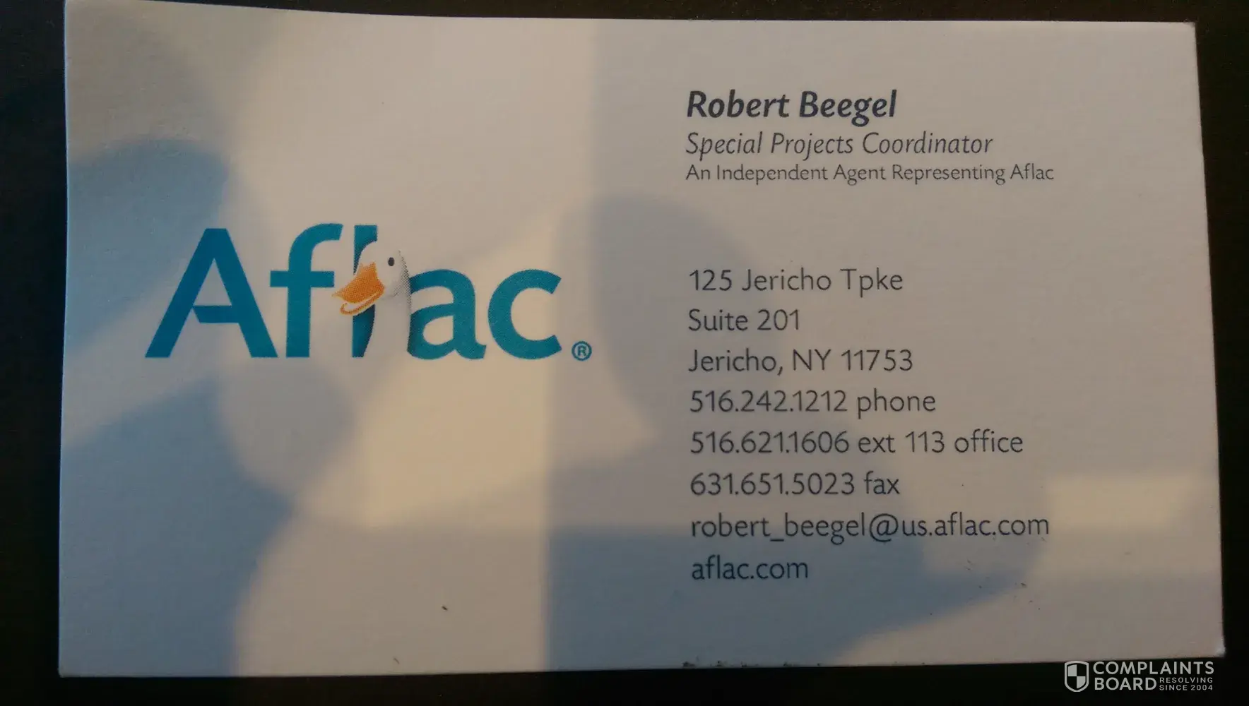 Our facility has a long term disability carrier and I have expressed that to the representative who continues to come to our emergency hospital. We do not want any further solicitation from mr. Robert beegel or any other aflac representative. Please remove 75 sunrise hwy, west islip ny 11795 from your sales persons visit list. This in now being considered harassment and we have logged a complaint with consumer affairs and our local police department. Please honor this request without delay.