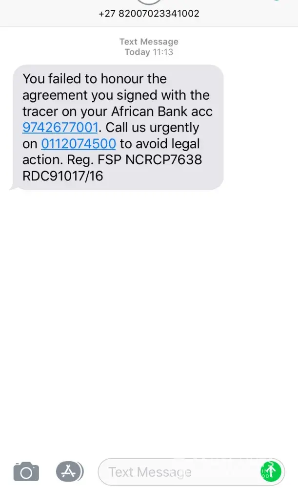 After I hung up, I received and sms threatening me with legal action as I have dishonored by agreement, which I false accusations.