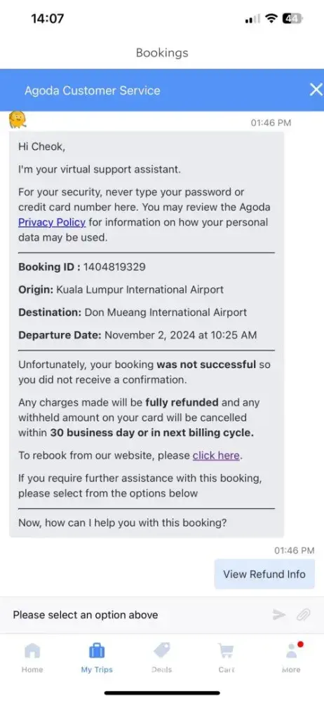 Agoda Chairman American Express, Request for Refund from Hotel Booking Issue