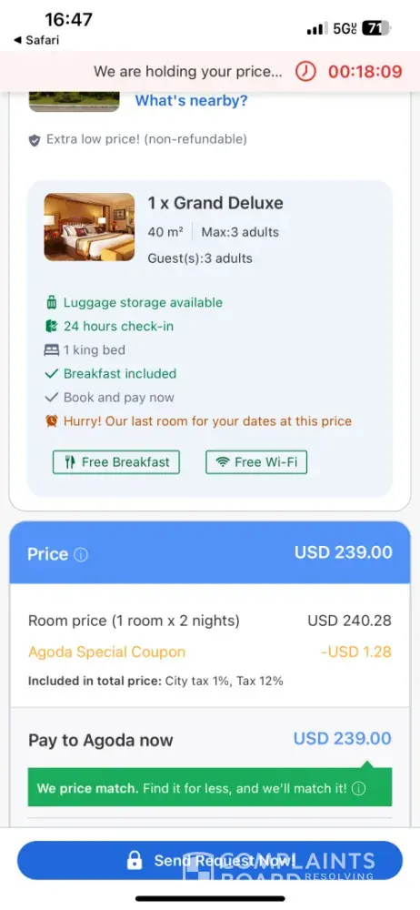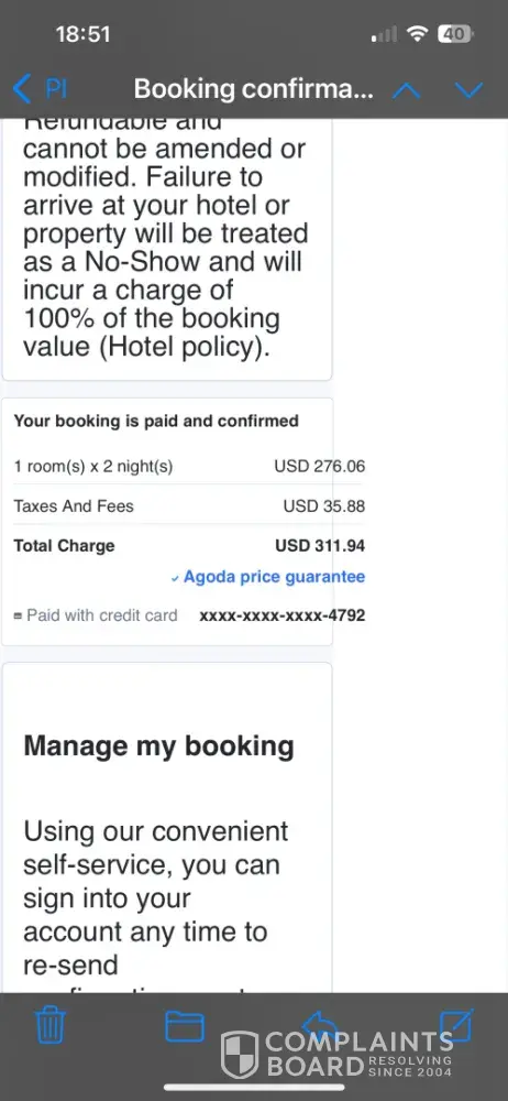 Agoda On April 5th 2023 I booked a room to the site aguda I clicked on the rate that said $48 for the night I chose the room