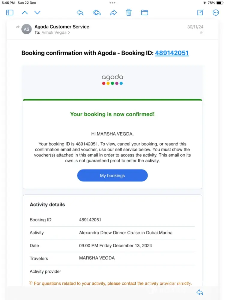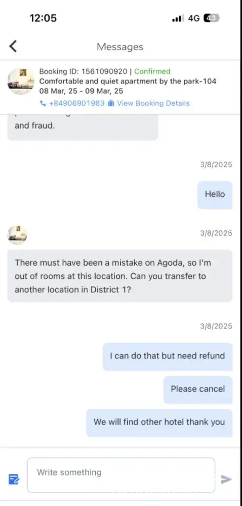 I insisted that Agoda resolve the issue by determining why my cancellation request from October had not been processed. They claimed they had no record of my cancellation. Since then, I have been urging Agoda to investigate and escalate the matter, as I should not be held financially responsible for their oversight. However, they have been uncooperative and suggested I resolve the issue with my bank. They have even threatened to take action over a negative review I posted unless I agreed to remove it. When confronted again about their failure to cancel my booking, they conveniently had no record of the conversation.