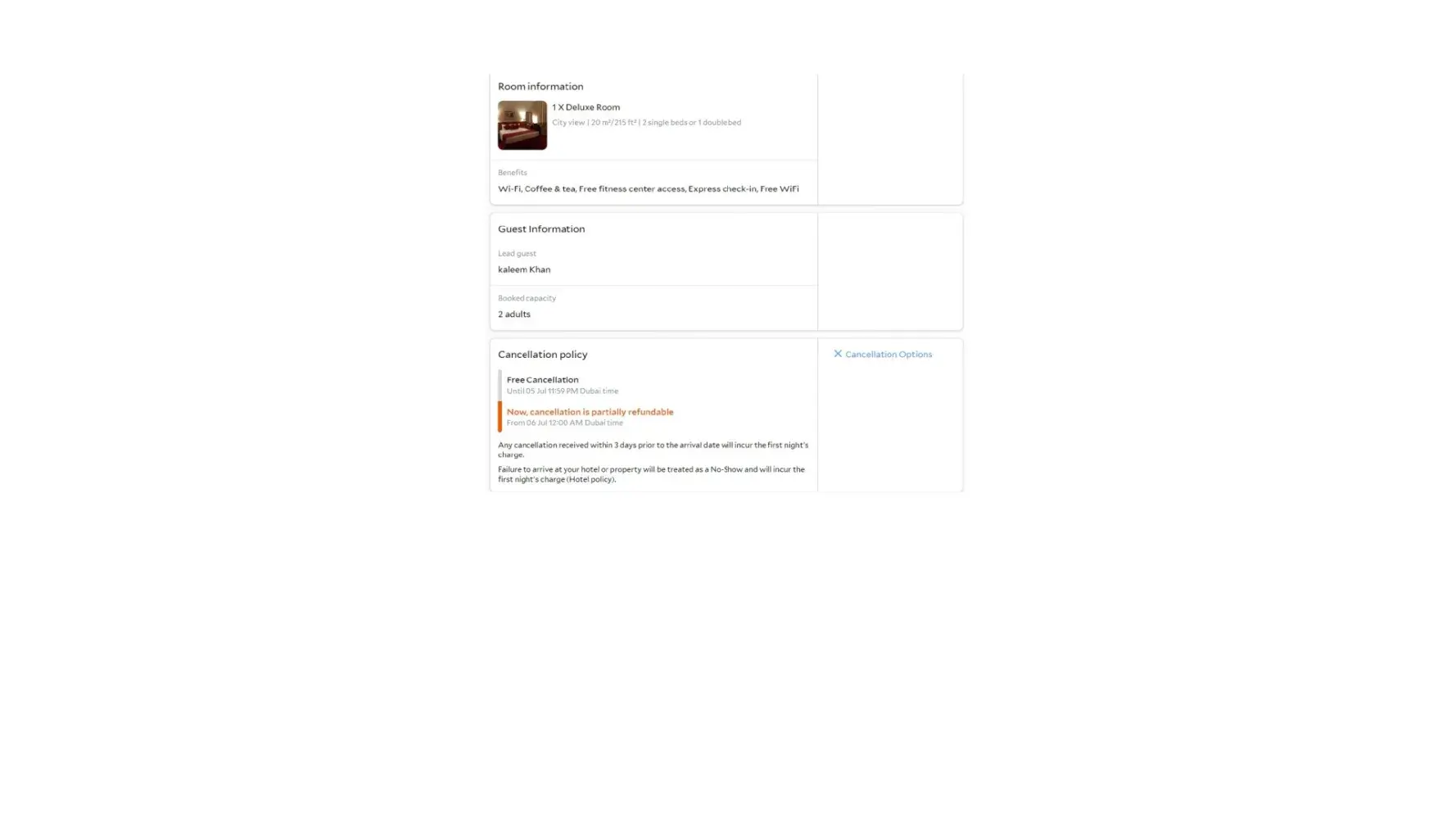 I have booked a hotel room Booking (Lotus Grand Hotel) for 6 nights (9 July 22 till July) in Booking ID [protected]. As per booking terms one night rent will be charged and balance amount will be refunded; however when i am trying to cancel the booking, Entire amount is being shown as cancellation fee which is against the booking terms (Plz find attached screenshot as proof)