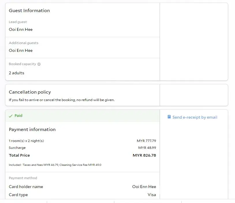 After that, I realized my credit card has been charged for the booking fees made on the 03 May 2022 which is RM 441.26 . The booking fees was charged to my credit card on 06 May 2022.