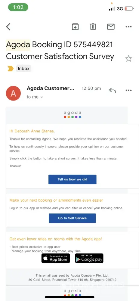 After appealing to both the hotel and to agoda customer service, I was met with resistance. Adter second email, agoda offered an agoda cash coupon of half of the room cost redeemable on any future credit card booking with Agoda.