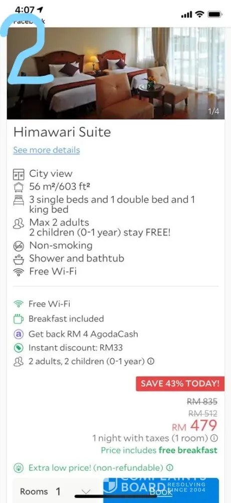The management said that " I ALSO DON'T KNOW WHY AGODA ADVERTISE LIKE THIS ", this cost us 90 dollars for the extra bed. Below is the invoice (picture no. 4).