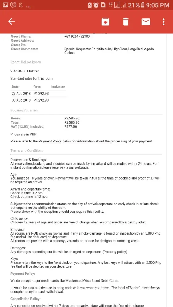 Owing to the fact i was NOT travelling with my wife this time, we opted to pay for the room in advance, as well as making some requests. These remarks can be seen on the attached voucher photo attached.