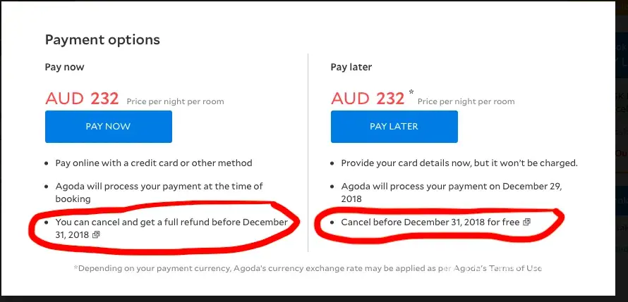 Directed the payment to be in the hotel currency (using the check box) but agoda.com billed me in my credit card currency with an appalling exchange rate. It negated all the savings for the hotel offered on their site.