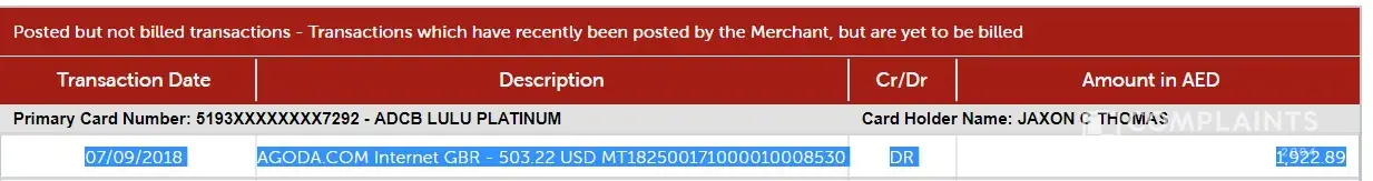 There was an unauthorized agoda booking transaction through my credit card on 7th sept 2018 (agoda.com internet gbr - 503.22 usd mt182500171000010008530). I have contacted adcb bank and raised the complaint. they cancelled the card and reissuing another card. please do the needful to cancel the booking and reimburse the amount asap. also please give more details of the booking so that I can give it to bank for their reference.
