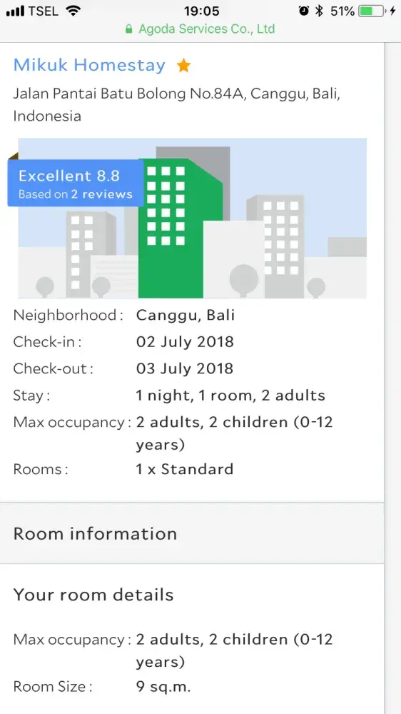 I had booked a single night stay for the 02 July at Mikuk homestay. I had paid in advance via the agoda website.