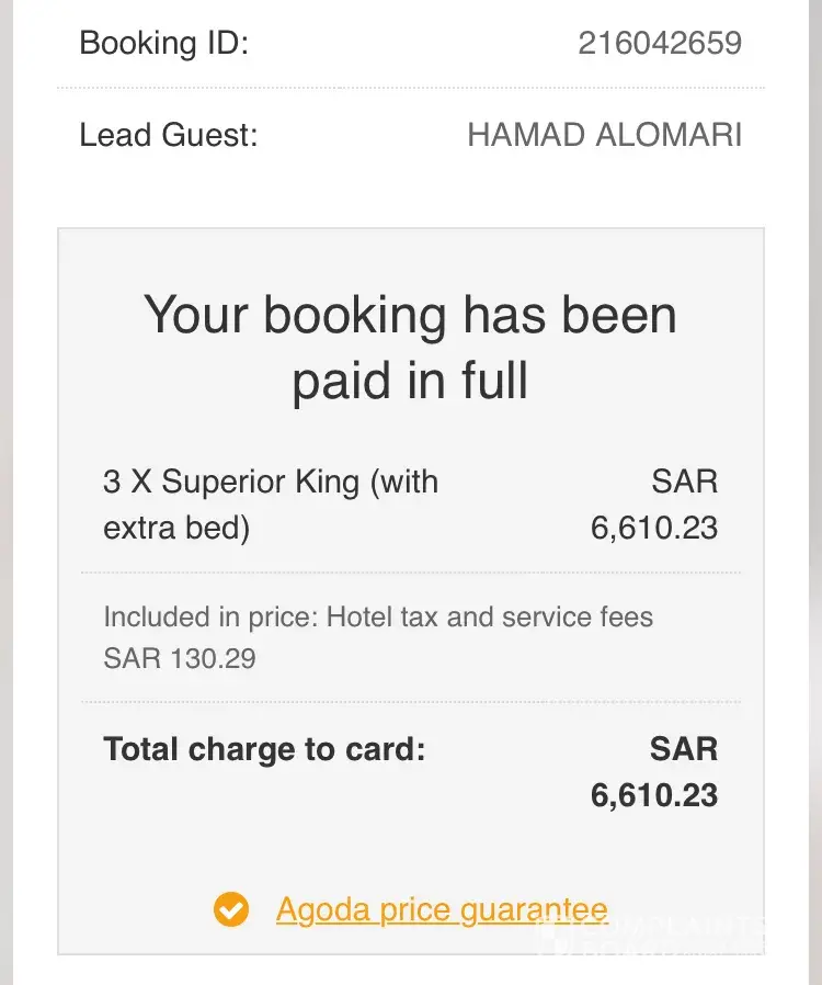 My booking number was [protected]. I am not sure if this is the property owner fault or Agoda...