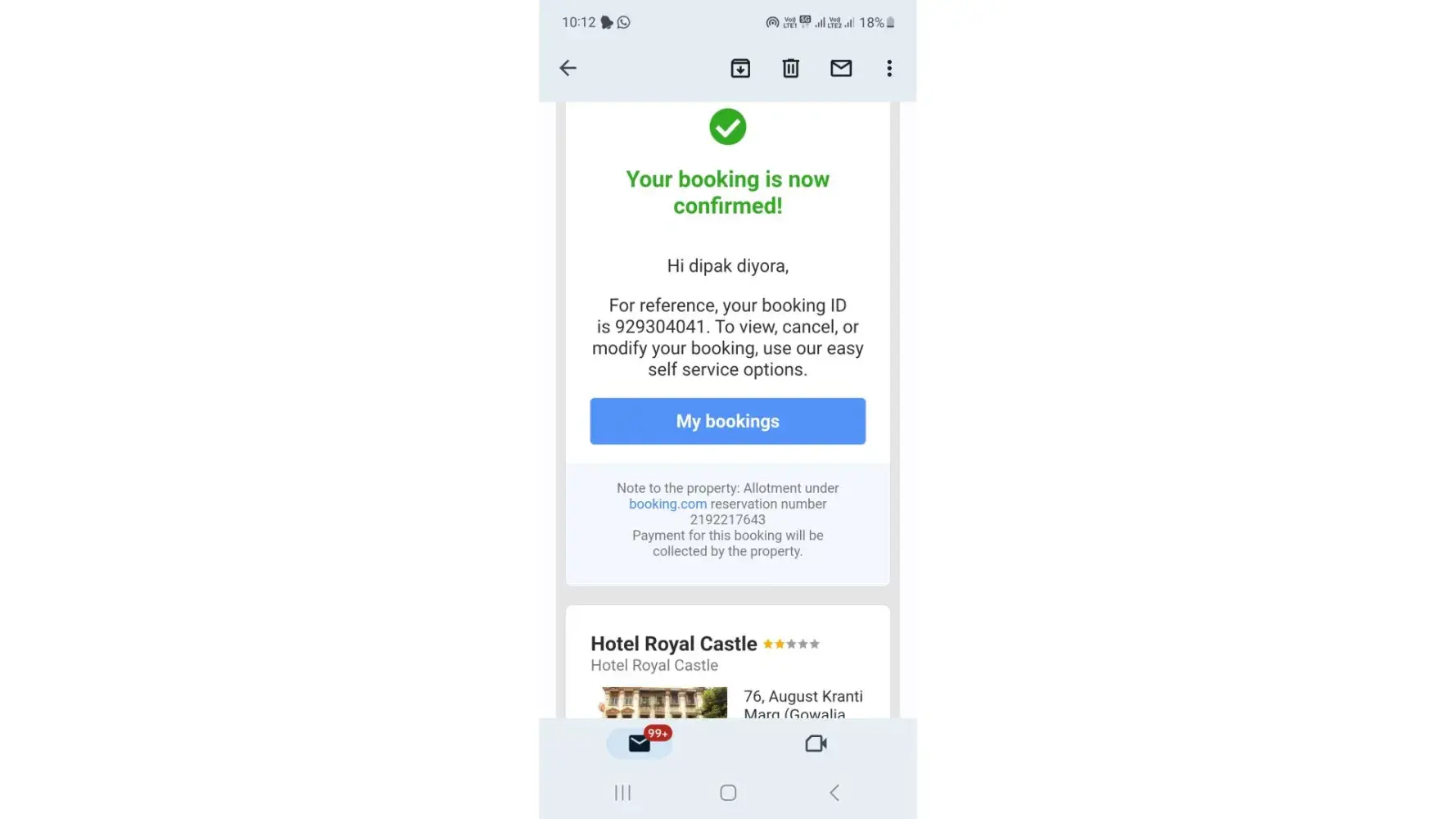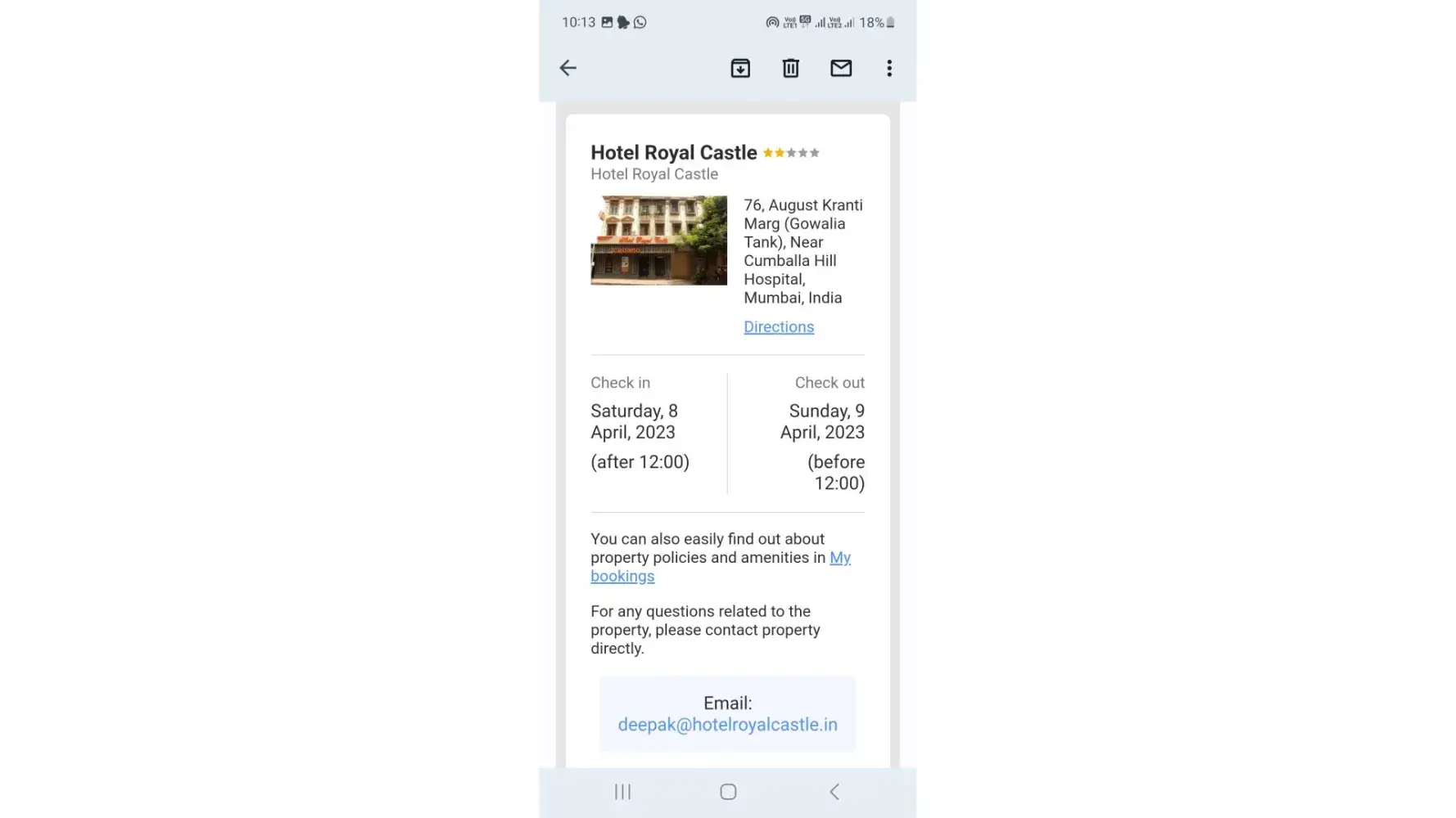 I booked room by platform of agoda on 8th April check in and 9th April Check out and I was got confirmation of booking room in Hotel Royal Caste mumbai.