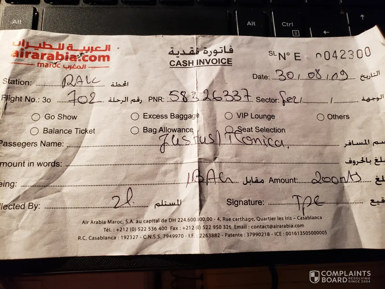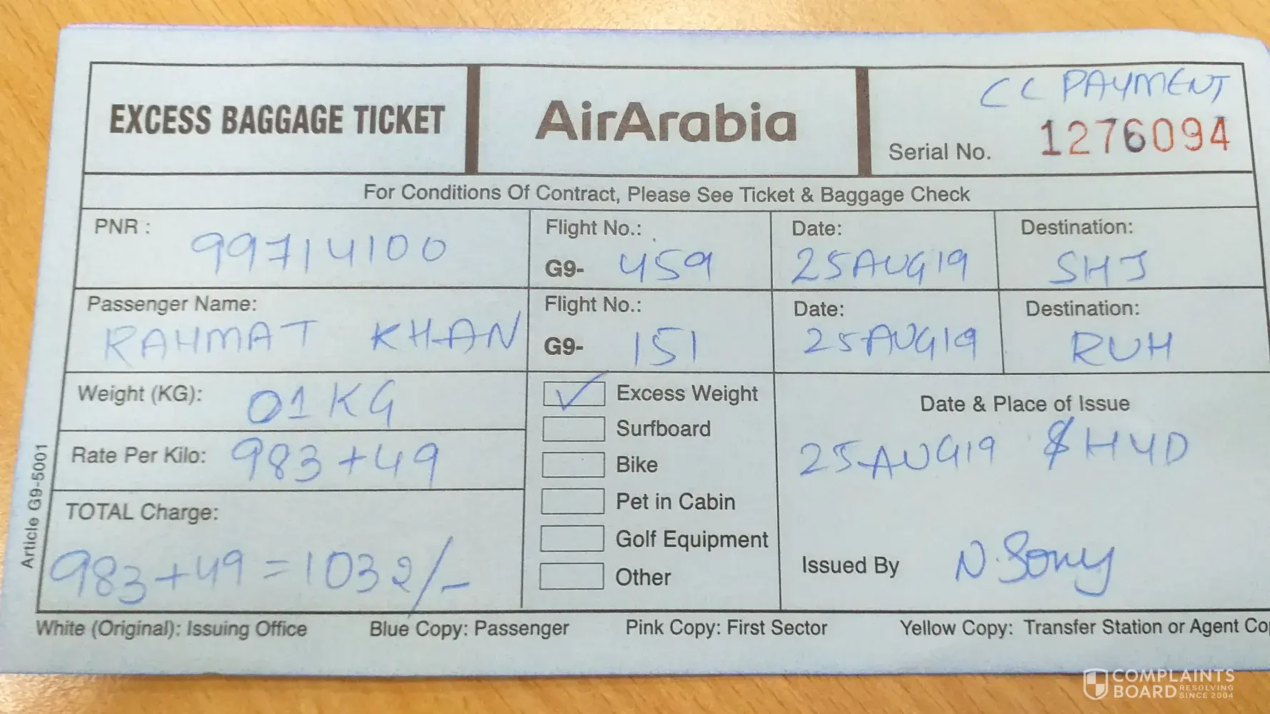 this was not mentioned while we booked ticket again, AIR ARABIA