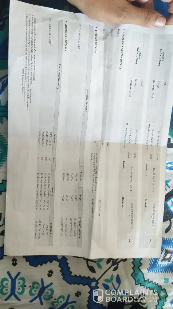 I gulafsha ghouri travel through air arabia on 19-20 september from delhi to bishkek via sharjah from flight no. G9464 and G9347