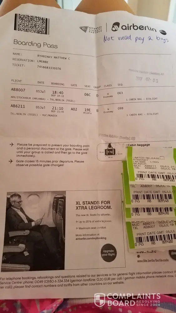 Last week I had a trip with Air Berlin (booking ref: KOW2ZM).
