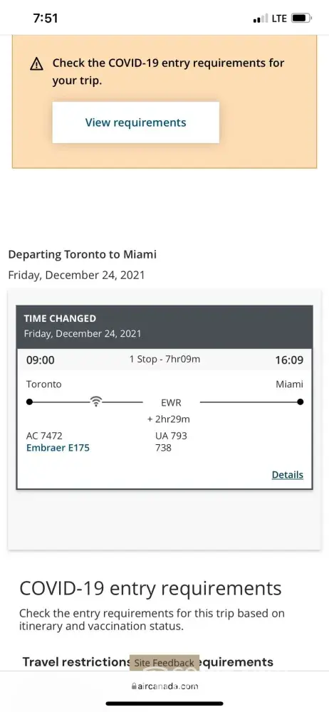 Air Canada I am complaint about my return from Orlando to Ottawa