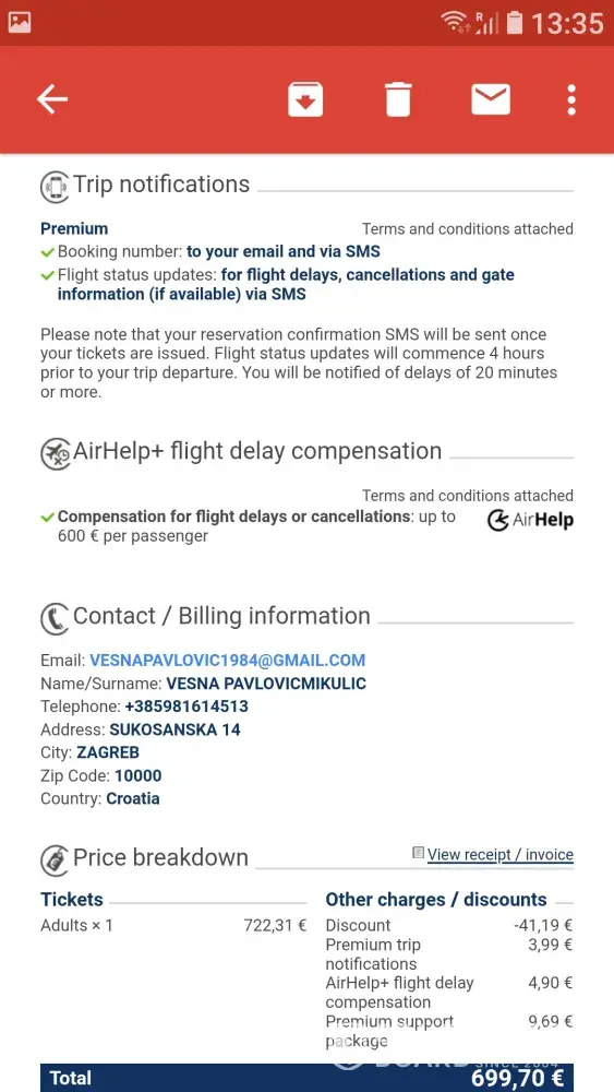 When I booked my round flight from Zagreb to Fort Lauderdale, I payed extra for Airhelp+flight delay, and now when I experienced delay of more then 5 hours, nobody even try to contact me and say what is going to happen now.