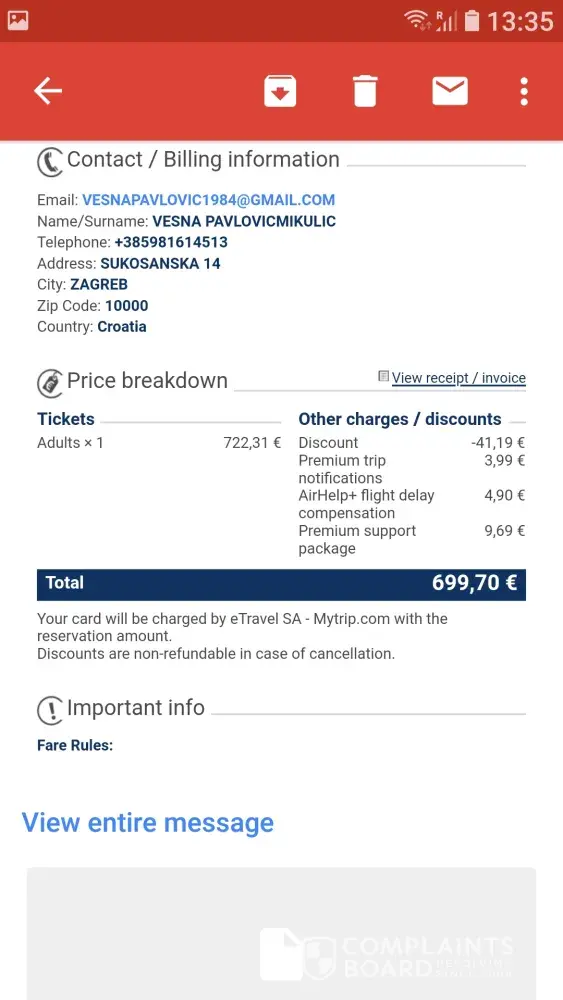 Verified customer This complaint was posted by a verified customer. Learn more